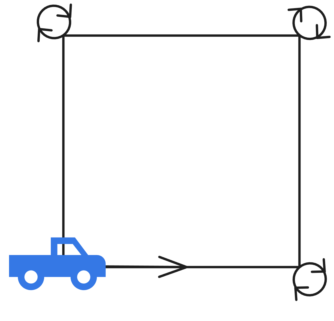 Schreiben Sie ein Programm, das den Maqueen ein Quadrat fahren lässt. Halten Sie den Code unten fest.