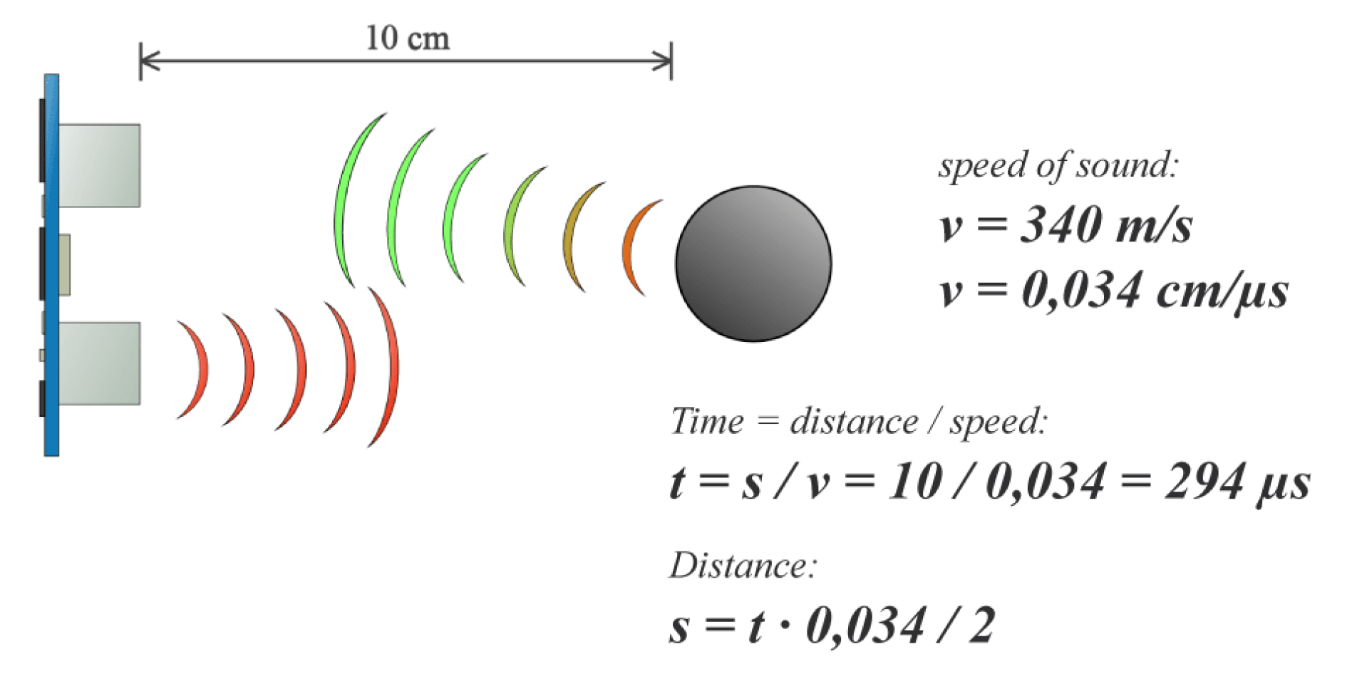 @Zum Glück müssen Sie sich nicht um die genaue Berechnung kümmern, sondern können die Funktion ultrasonic() verwenden, was die Entfernung in cm zurückgibt.